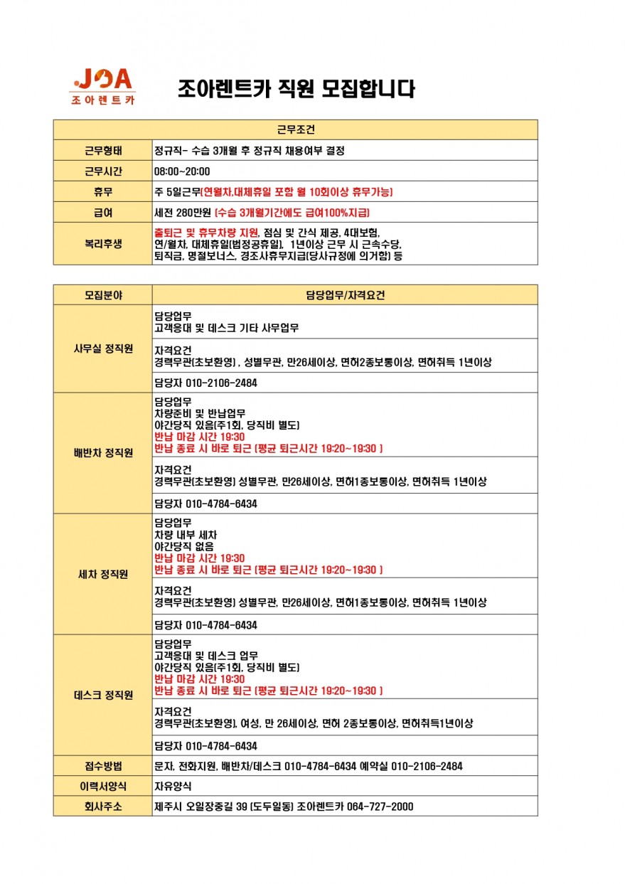 ⭐໒(◉ᴥ◉)७조아렌트카 / 예약실데스크배차세차 / 출퇴근휴무차량지원 페이지 정보 작성자 쎄OO어 작성일25-12-26 17:01 조회404회 연락처 010-4784-6434 급여 월급 : 280만원 관련링크 본문 주소 : 제주특별자치도 제주시 오일장중길 39 조아렌트카 이전글 다음글 목록