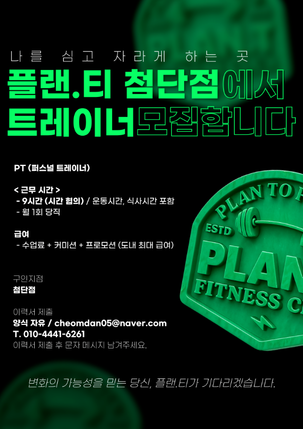 [ PT / 트레이너 ] 플랜티 휘트니스 첨단점에서 함께 근무할 직원을 모집합니다