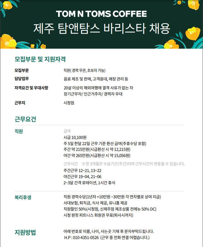 제주 시청 탐앤탐스 직원 구인 페이지 정보 작성자 TOOOOOOS 작성일25-10-20 12:43 조회266회 연락처 010-4351-0526 급여 시급 : 10100 관련링크 본문 사진 참조 부탁드립니다. 주소 : 제주특별자치도 제주시 중앙로 236 문산빌딩 1층 이전글 다음글 목록