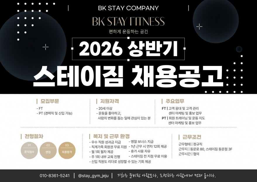 BK 스테이컴퍼니 스테이짐 동문점(1호점) 및 오라점(2호점) 채용 공고