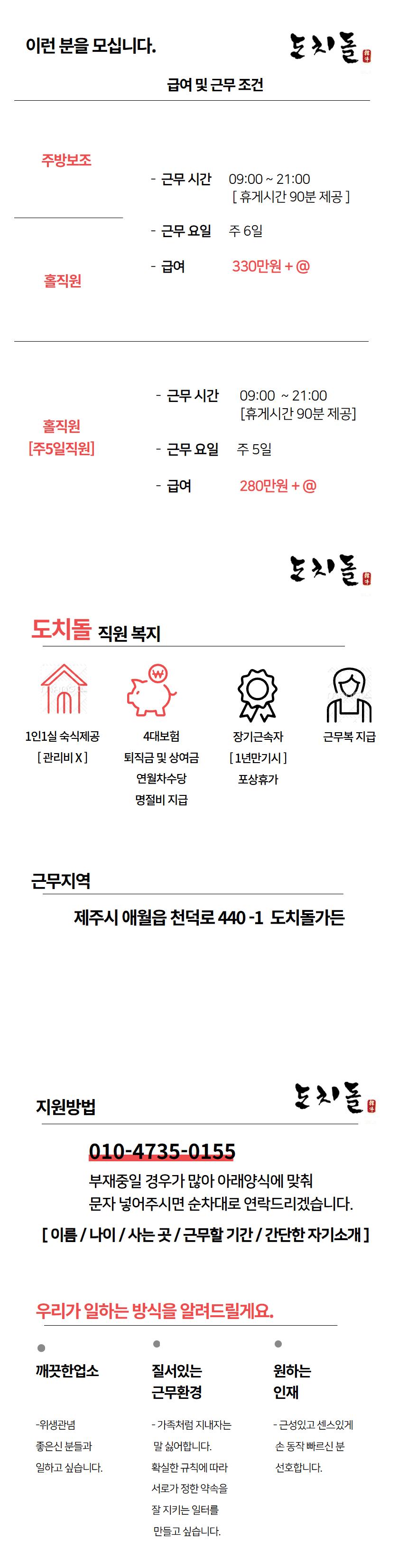 [숙식제공/1인1실]_330만원_주방보조,_홀직원_모집 페이지 정보 작성자 gOOOOOOOOO8 작성일25-10-18 07:49 조회222회 연락처 010-4735-0155 급여 월급 : 330만원 관련링크 본문 . 주소 : 천덕로440-1 이전글 다음글 목록