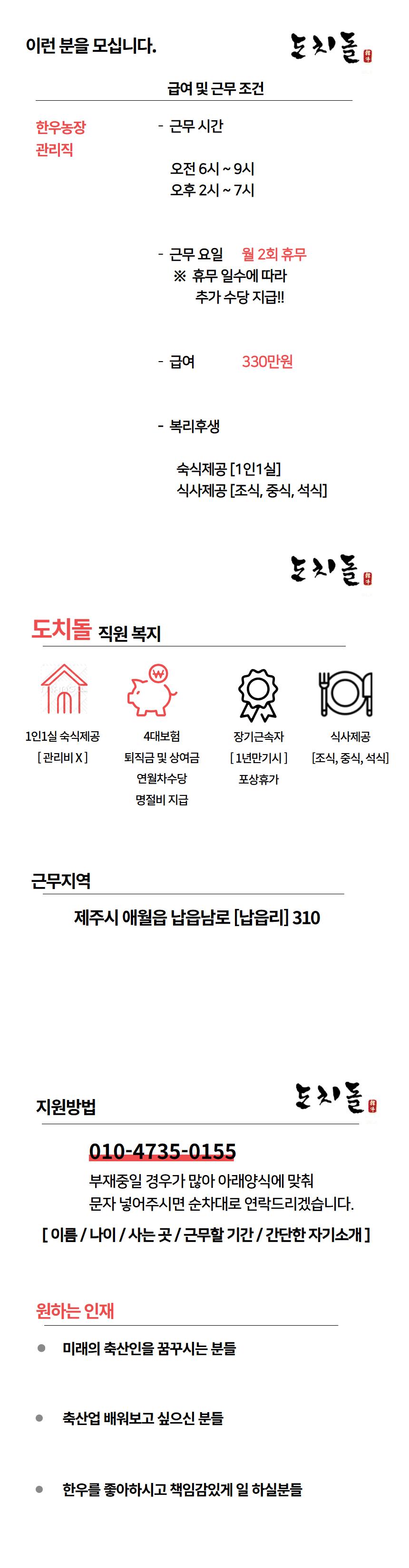 [1인1실/숙식제공]_한우농장관리직_모집 페이지 정보 작성자 pOOOOO5 작성일25-12-31 08:11 조회444회 연락처 010-4735-0155 급여 월급 : 330만원 관련링크 본문 . 주소 : 천덕로440-1 이전글 다음글 목록