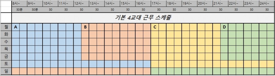 현재 4명의 총무가 4교대(A~D타임)로 운영중입니다.
