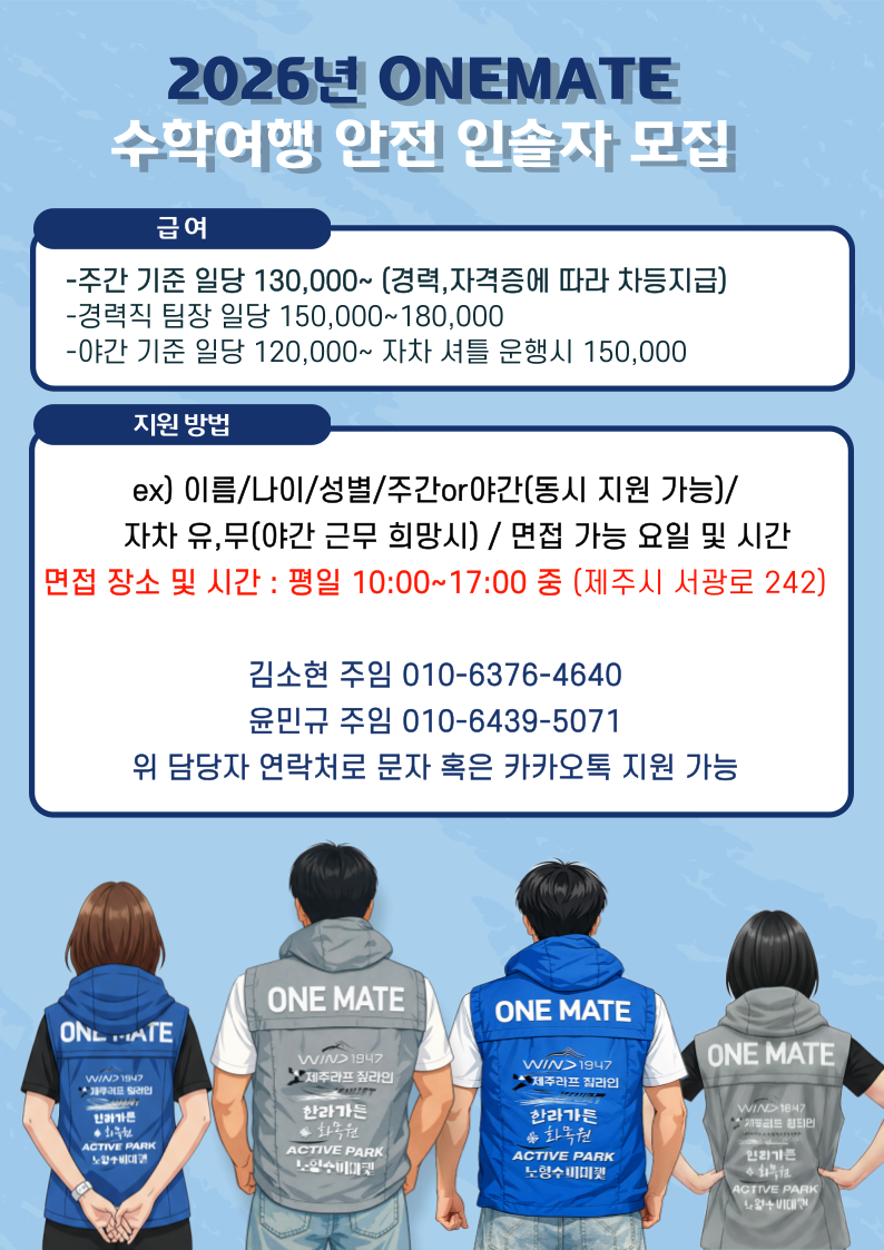 원메이트에서 일할 수학여행 안전인솔자를 구합니다